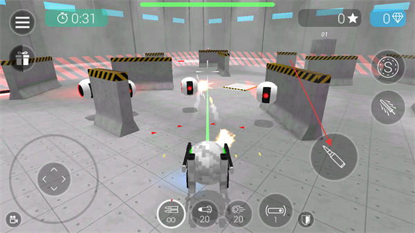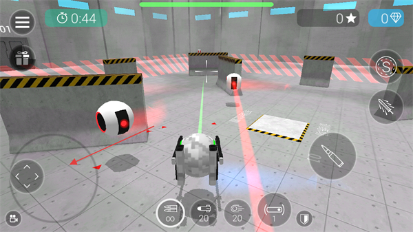 3、通過(guò)左下角的方向鍵控制小機(jī)器人的方向移動(dòng),用于躲避其他機(jī)器人的攻擊。