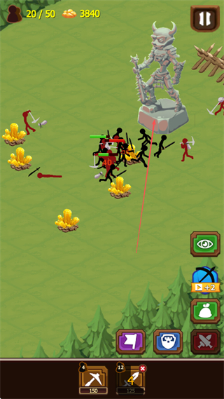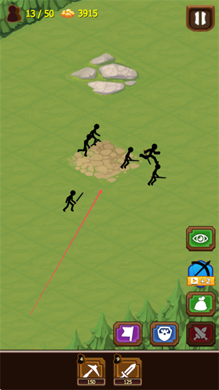 1、操控火柴人士兵在地圖上移動(dòng),與敵方火柴人交戰(zhàn),通過戰(zhàn)斗獲取資源。