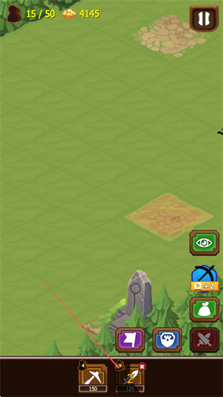3、點(diǎn)擊下方工具按鈕,如鎬頭、刀劍等,升級(jí)或部署士兵,增強(qiáng)戰(zhàn)斗能力。