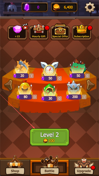 1、花費金幣解鎖Level2進入新關(guān)卡,可在商店升級鎬頭、時鐘等道具增強戰(zhàn)力。