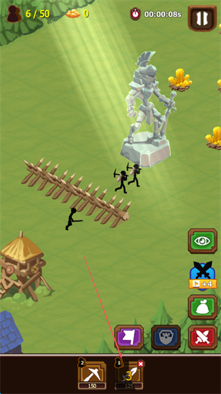 2、指揮火柴人士兵在戰(zhàn)場移動,利用柵欄等地形,攻擊敵方單位,同時采集資源。
