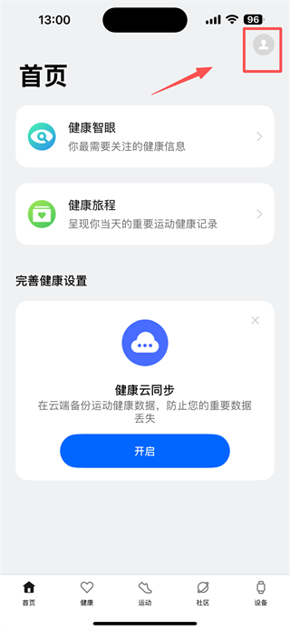 1、打開健康類APP,點(diǎn)擊右上角個(gè)人中心圖標(biāo),進(jìn)入個(gè)人中心頁(yè)面。