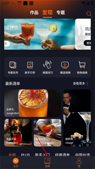 1、在JO雞尾酒首頁,點(diǎn)擊酒單,進(jìn)入酒單頁面。