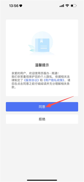 1、在溫馨提示的彈窗中,點(diǎn)擊同意并繼續(xù),進(jìn)入首頁。