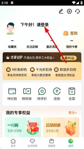 2、在個(gè)人頁(yè)面,點(diǎn)擊請(qǐng)登錄,進(jìn)入中郵車務(wù)登錄頁(yè)面。