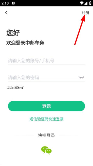 3、在登錄頁(yè)面,點(diǎn)擊右上角注冊(cè),進(jìn)入注冊(cè)頁(yè)面。