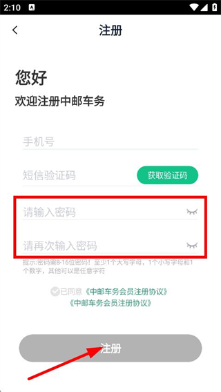 5、設(shè)置登錄密碼并再次輸入確認(rèn),點(diǎn)擊注冊(cè),完成注冊(cè)操作。