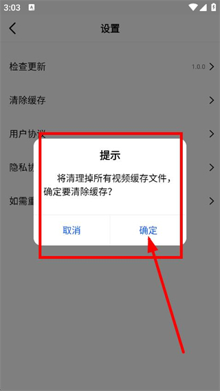 3、在設(shè)置頁(yè)面,點(diǎn)擊清除緩存,彈出提示框。