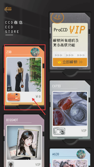 2、在相機選擇頁面,點擊相機商店圖標,進入相機商店頁面。