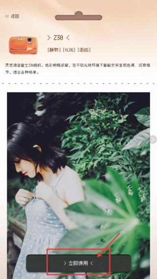 4、在濾鏡詳情頁面,點擊立即使用按鈕,應用該濾鏡。