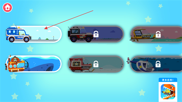 1、進(jìn)入游戲后,點(diǎn)擊關(guān)卡進(jìn)行警車(chē)類(lèi)型的選擇,不同的警車(chē)進(jìn)入的游戲地圖不同。