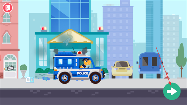 3、點(diǎn)擊左側(cè)屏幕空白區(qū)域控制警車(chē)的后退,避免有金錢(qián)或未逮捕的恐龍遺漏。