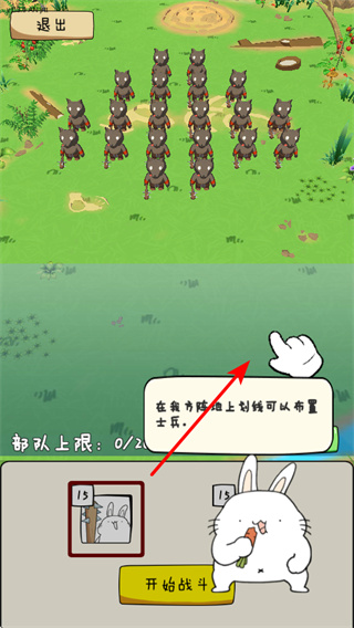 4、在軍事戰(zhàn)斗布局界面,按照提示在我方陣地上劃線布置士兵,這是組建軍隊、提升戰(zhàn)斗能力的關(guān)鍵操作,確保戰(zhàn)斗勝利以獲取更多發(fā)展資源。