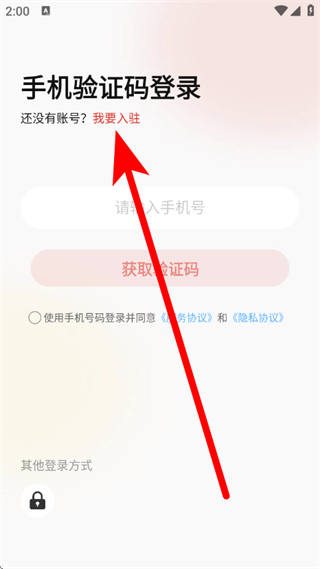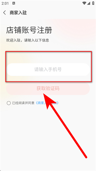 3、在注冊頁面,輸入手機(jī)號后,點(diǎn)擊獲取驗證。