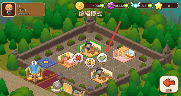 3、進入編輯模式,移動課程建筑至合適位置,點擊OK確認布局。