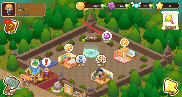 4、課程建筑啟動后,可點擊加速按鈕,縮短建造時間。