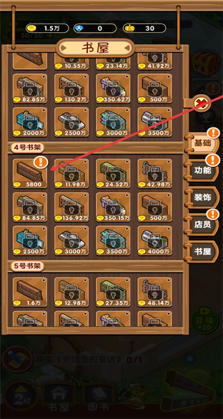 2、在進(jìn)入書屋中,若需擴建書架,選擇箭頭指向的“簡易書架”。