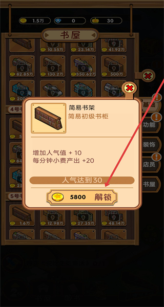 3、在彈出書架屬性窗口時,可以點擊消耗5800金幣解鎖。