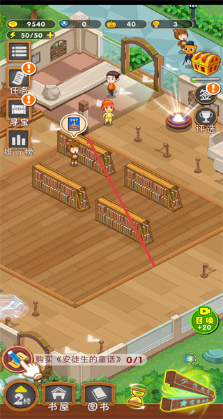 4、解鎖書架后返回圖書館場景,點擊響應(yīng)顧客尋書需求。