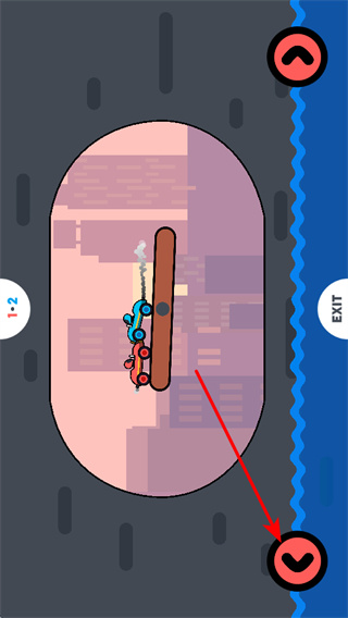 3、遇到賽道中的機關或需確認的環(huán)節(jié)時,點擊紅色箭頭指向的確認按鍵,可推進游戲進程,確保每個關鍵節(jié)點能順利通過。