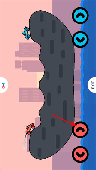 4、在復雜賽道中,點擊對應方向的操控按鍵來控制賽車移動,可實現(xiàn)爬坡、下坡等操作,運用按鍵能讓賽車適應賽道地形。