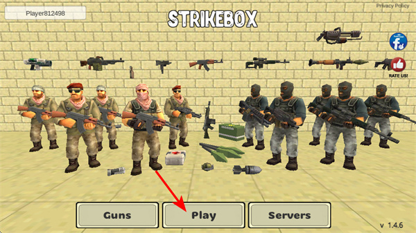 1、在游戲主界面,點擊Play按鈕可進入對戰(zhàn)模式,這是開啟射擊對戰(zhàn)的關(guān)鍵操作,準確點擊才能進入戰(zhàn)場。