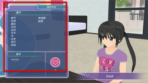 2、點擊右下角愛心圖標,可查看女友的喜好、偏好地點等信息,根據(jù)這些信息安排活動能有效提升好感。