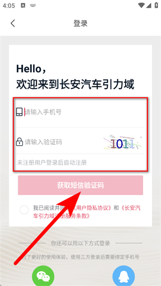 3、在注冊頁面,輸入手機號后,點擊獲取短信驗證碼。