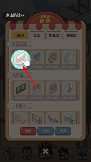 3、進(jìn)入商店界面后,點(diǎn)擊如普通的畫作之類的裝飾道具,可查看其屬性和功能,是提升店鋪裝飾等級(jí)關(guān)鍵操作。