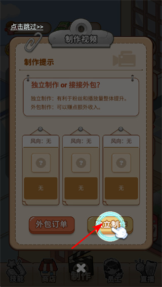 3、在制作視頻選擇界面,點(diǎn)擊獨(dú)立制作按鈕可自主開(kāi)展視頻創(chuàng)作,這是提升粉絲和播放量的關(guān)鍵選擇,獨(dú)立制作有利長(zhǎng)期經(jīng)營(yíng)發(fā)展。