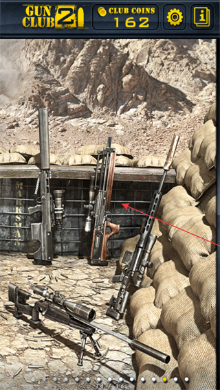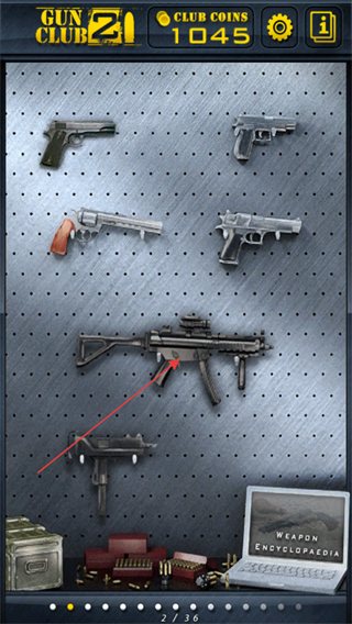 2、右劃屏幕拉動到下一頁面,后面的頁面大致都是槍架,點擊槍架上的槍械可以近距離研究細節(jié)。