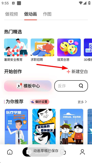 2、在做動畫頁面點(diǎn)擊新建空白,可開始創(chuàng)作動畫。