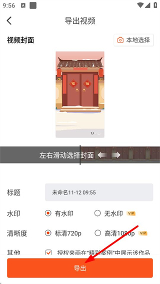 6、在導(dǎo)出視頻頁面設(shè)置封面、標(biāo)題等,點(diǎn)擊導(dǎo)出完成視頻導(dǎo)出。