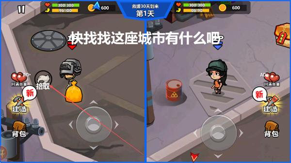 1、在城市中探索,拾取物資如裝備、金幣,點擊拾取按鈕收集資源,為生存和戰(zhàn)斗做準備。
