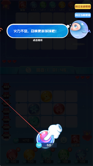 3、當(dāng)火力不足時(shí),消耗SP能量召喚更多球球,增強(qiáng)戰(zhàn)斗陣容,應(yīng)對(duì)更強(qiáng)的敵人。
