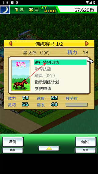 3、在訓(xùn)練欄中我們可以選擇進(jìn)行特別訓(xùn)練或是指示訓(xùn)練計(jì)劃兩種方式對馬匹進(jìn)行訓(xùn)練。