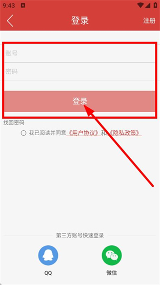 4、在登錄頁面,輸入賬號(hào)和密碼,點(diǎn)擊登錄,完成登錄操作。