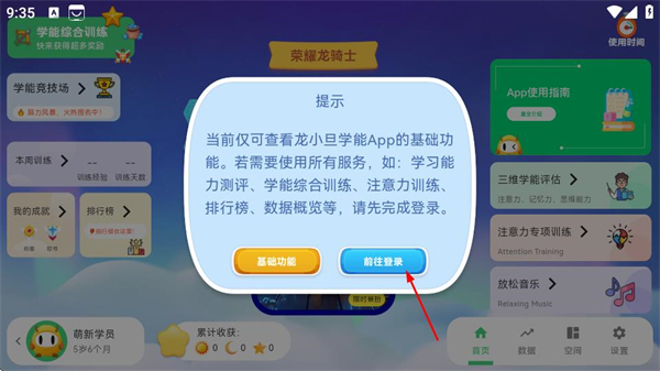 1、在龍小旦學(xué)能首頁(yè),點(diǎn)擊左下角萌新學(xué)員選項(xiàng),彈出提示框。