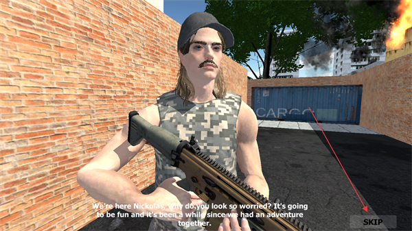 2、游戲中有劇情對話環(huán)節(jié),右下角SKIP按鈕可跳過劇情,快速進(jìn)入戰(zhàn)斗階段,節(jié)省時間。