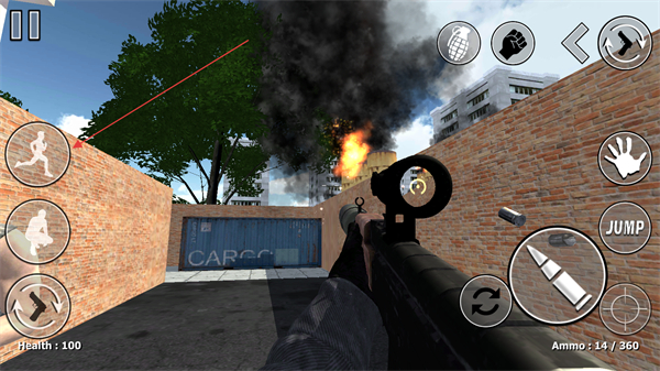 4、點(diǎn)擊彈藥圖標(biāo)進(jìn)行射擊,需關(guān)注彈藥數(shù)量,及時換彈;還可使用手雷等道具輔助戰(zhàn)斗,提升作戰(zhàn)效率。