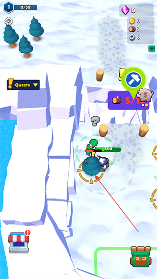 2、在雪地場(chǎng)景中移動(dòng),探索不同區(qū)域,觸發(fā)任務(wù)如帶有感嘆號(hào)的標(biāo)識(shí),完成任務(wù)可獲得獎(jiǎng)勵(lì)。