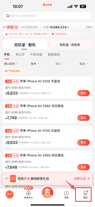 1、打開(kāi)數(shù)碼交易類APP,點(diǎn)擊底部我的選項(xiàng),進(jìn)入個(gè)人中心頁(yè)面。