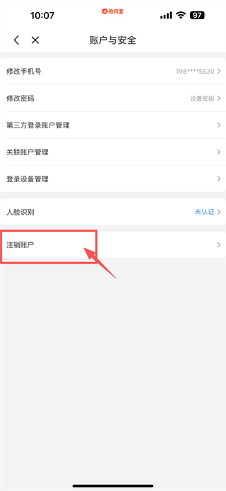4、在賬戶與安全頁(yè)面,點(diǎn)擊注銷賬戶選項(xiàng),完成賬號(hào)注銷操作。