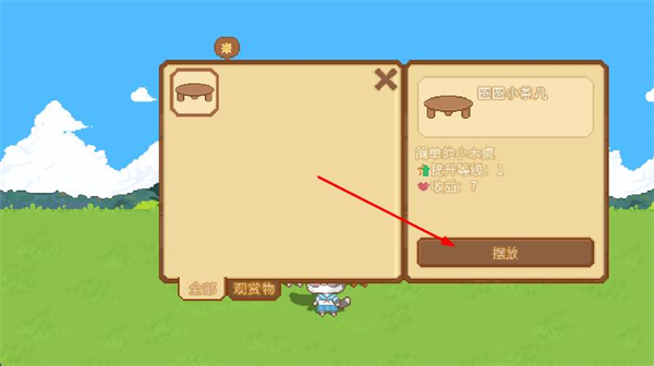 2、選擇家具,點擊擺放,在村莊中布置家園,打造個性化的環(huán)境。