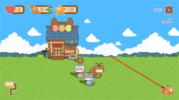 1、點擊界面中的背包圖標,查看可使用的物品,如家具、種子等。