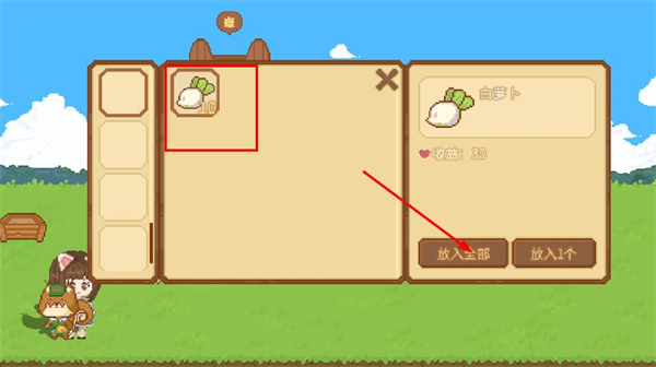 4、收貨的農作物,可以選擇上架,出售給小動物,獲得金幣和愛心。