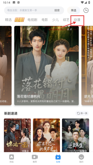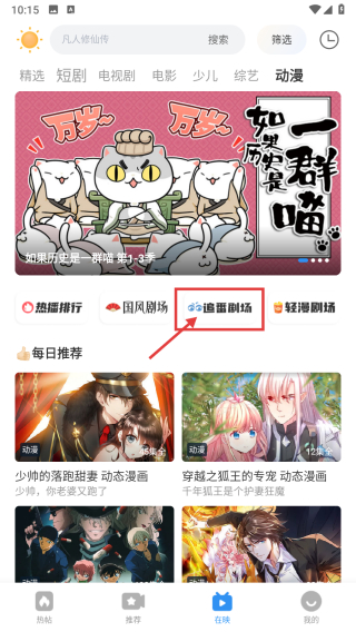 1、打開視頻類APP,點擊頂部動漫分類標簽,進入動漫頁面。