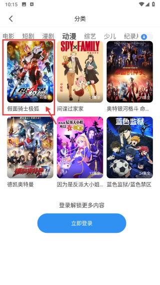 3、在追番劇場頁面,選擇假面騎士極狐動漫,進入動漫詳情頁面。