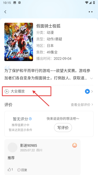 4、在動漫詳情頁面,點擊大全播放按鈕,進行該動漫的播放。