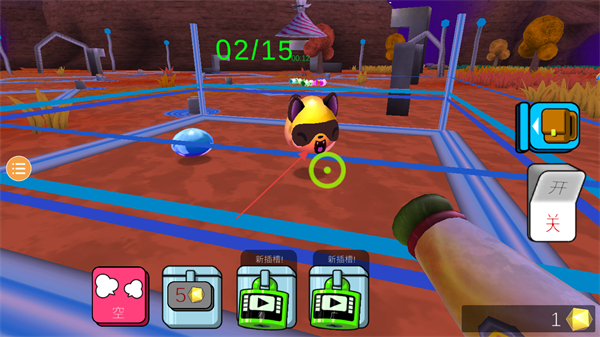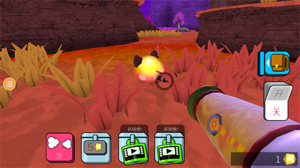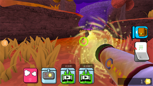 2、滑動(dòng)右側(cè)屏幕控制視角將準(zhǔn)心對(duì)準(zhǔn)史萊姆點(diǎn)擊右側(cè)真空槍的開(kāi)關(guān),將史萊姆吸到真空槍中。